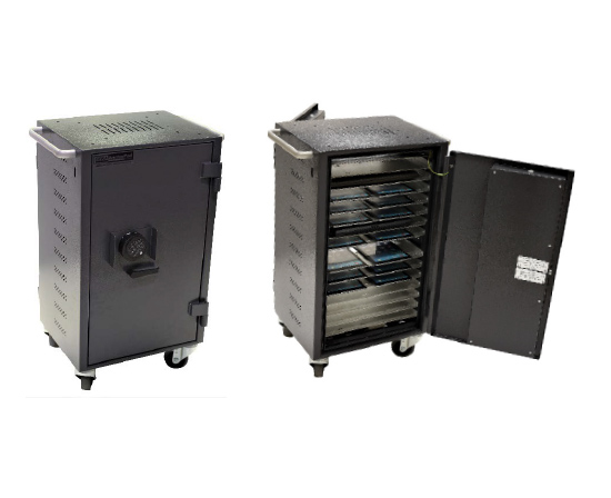 Mobiliteten gör att vagnen kan fungera som mobilt klassrum eller i alla sammanhang där flyttning av Laptops/Surfplattor behöver göras. Säkerhetsvagnen är tillverkad i en mycket solid stålkonstruktion med samma låsmekanism som klassade säkerhetsskåp och våra vagnar är de i särklass kraftigaste på marknaden. Levereras som standard med ett avancerat och godkänt kodlås med många inställnings- möjligheter. Unik utformning gör att om batteriet tar slut byts batteriet enkelt från utsidan av vagnen. Vagnen har kraftiga dörrar såväl fram som bak vilket förenklar kabeldragning och igångsättning av vagnen.