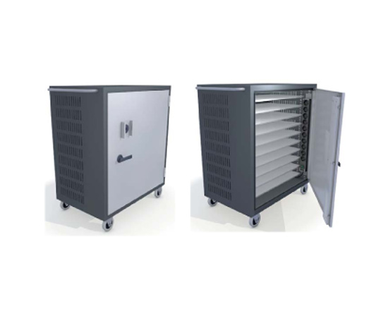CEKA-AnchorPads unika lösning för säker förvaring, flyttning, laddning och synkronisering av Laptops, iPads/Surfplattor, Mini-Laptops. Vagnen finns i 2 versioner: Small som rymmer upp till 10st Laptops eller 20st iPads/Surfplattor/Mini-Laptops alternativt Large som rymmer 20st Laptops eller 30st iPads/Surfplattor/Mini-Laptops. Vagnen har en mycket säker och solid konstruktion i pulverlackerad stålplåt och är byggd med samma låsmekanism som klassade säkerhetsskåp är utrustade med. Finns i versioner med godkänt nyckellås av högsäkerhetstyp eller med avancerat och godkänt kodlås med många inställningsmöjligheter som är ett bra val om Ni är många användare). Som standard har vagnen 10st uttag (62844) alternativt 20st uttag (62855) men fler uttagslister finns som tillval. Väl tilltagna hål sörjer för god ventilation vid laddning. Som tillval finns Termostatstyrd fläkt (636) om man önskar ha datorerna i drift, exempelvis vid uppdateringar nattetid (fläkt behövs ej vid endast laddning). Specialhjul gör vagnen mycket lättmanövrerad. Som tillval finns tillbehör för förankring mot vägg eller kring annat fast föremål, monteringshylla för skrivare, portabel tröskelplåt som gör det enkelt att köra även över höga trösklar samt Ladd/Synkenhet eller Laddstation för iPads/Surfplattor.