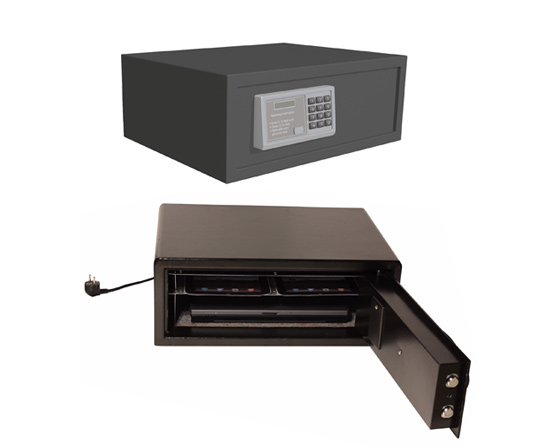 Kraftig stöldskyddsbox för säker förvaring, laddning och synkronisering av 2st Laptops / 4st iPads/Surfplattor, Mini-Laptops. Levereras med ett avancerat kodlås och är lämplig för såväl Skolor, Universitet, Kontor, Hotell etc. Som standard har boxen 6st uttag. Boxen kan monteras separat på bord, golv eller vägg. alt. kan flera boxar monteras på varandra i höjd. Som tillval finns sockel för enklare åtkomst till boxarna och en Ladd/Synk-enhet. Mått utvändigt: (HxBxD): 200x520x406 mm.