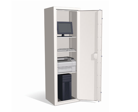 Ett av marknadens kraftigaste serverskåp. Stöldskyddsklassat och godkänt enligt SS3492. Motstår mycket tuffa angrepp. Termostatstyrd fläktkylning sörjer för god ventilation. Skåpet har 2 fläktar, 4st dammfilter samt kontaktlist med 5 uttag. Maxmått: Standard (HxBxD) 630x500x600, Medium (HxBxD) 1300x500x600,